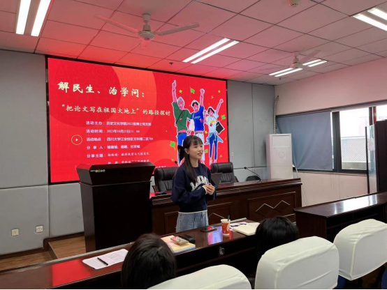 为积极响应学校党委关于开展“我为高质量发展做什么”主题党日活动号召,10月25日中午,历史文化学院2022级博士、硕士党支部联合开展了以“解民生、治学问:把论文写在祖国大地上”为主题的组织活动。