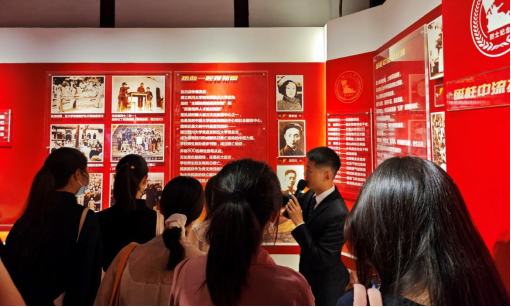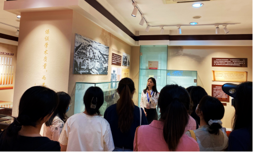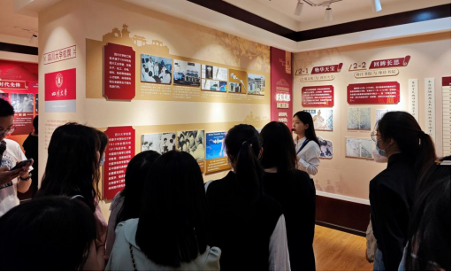 参观完江姐纪念馆,党支部同学一起前往校史展览馆,在讲解员的引导下回顾我校曲折、辉煌的发展历程。