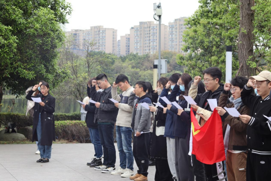 4月1日下午,历史文化学院2021级博士支部、2021级硕士第一支部、2021级硕士第二支部联合组织开展了以“缅怀革命先烈,争做时代新人”为主题的清明祭英烈主题教育活动。支部41名党员和入党积极分子齐聚川大英烈碑前,通过默哀、敬献鲜花、重温入党誓词、发表感想、行鞠躬礼等方式缅怀曾经在川大学习工作过的革命先烈,重温革命先烈们的丰功伟绩,追思革命先烈们的光辉足迹。