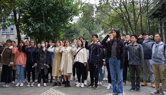 纪念馆参观完毕,全体成员在纪念馆旁庄严宣誓。初心如磐,使命如山,吾辈一定铭记光辉历史,传承红色基因,弘扬江姐精神。