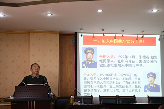 首先,文家成老师根据中共中央组织部对外发布的中国共党员总人数的一些数据入手,以“我为什么入党?”为切入点,通过分析朱德、贺龙、宋庆龄、华罗庚、牛犇、张丽莉等人加入共产党的典型事例,教导学生党员要端正入党动机,不忘初心,牢记使命。