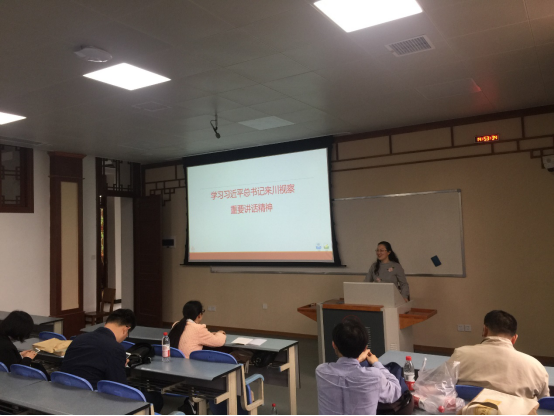 博物馆教职工纷纷表示要坚守工作岗位,做好公共服务,将西南文博事业发扬光大;古籍所教职工结合自身科研情况,坚持《巴蜀全书》和《儒藏》的大型文献的编纂工作,为我校的古文献整理研究做出积极贡献。考古系、历史系教师表示要以总书记来川视察为契机,进行深入学习,坚持做好“三育人”工作,引导学生树立正确的价值导向,全面加强“全课程核心价值观建设”,切实抓好习近平新时代中国特色社会主义思想进教材、进课堂、进头脑工作,把我们中华民族优秀传统文化传承下去;旅游学院教师发言表示要利用学科优势,以教师党员为骨干力量,主动与四川地方旅游业加强联系,增强应用学科服务社会、回馈社会的能力。