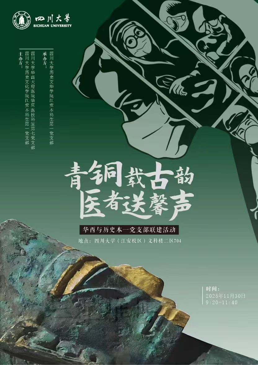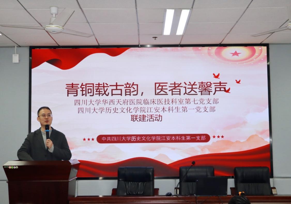2025年11月30日上午,由best365英国在线体育华西天府医院临床医技科室第七党支部与历史文化学院江安本科生第一党支部联合主办的“青铜载古韵,医者送馨声”联建共学活动在江安校区文科楼二区704报告厅顺利开展。华西专家、历史学院师生共计60余人齐聚一堂,以“党建+学术+健康”的跨界融合模式,共赴一场跨越三千年文明与当代医学温度的对话。