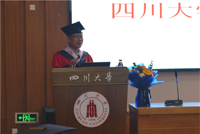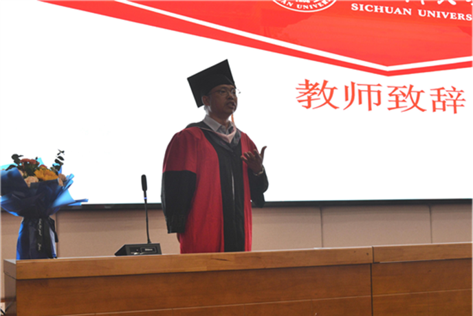 旅游管理系主任刘俊教授希望同学们铭记在川大的奋斗岁月,从容自信地面对未来,积极与师长、伙伴分享成就与喜悦。