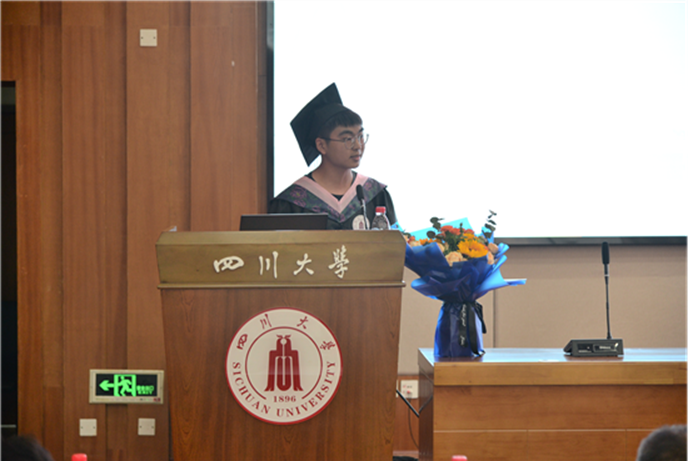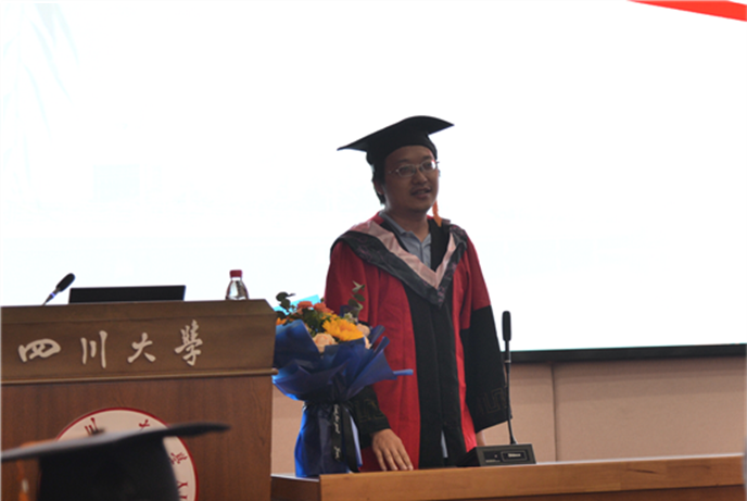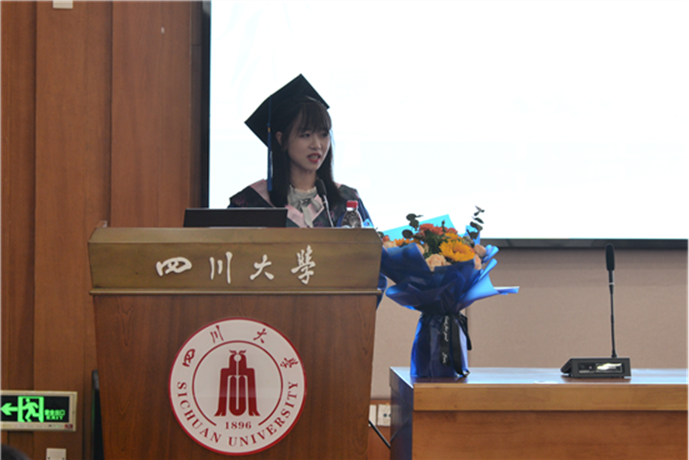 旅游管理2019级硕士研究生曾莹作为研究毕业生代表发言。她回顾了自己作为一名川大人、旅游人的成长历程,表达了对未来的期待,愿与所有旅游人、会展人和酒店人一起以青春之小我,实现家国之大我,以百川入海之姿流入生命汪洋大海,并感谢了学校和老师们的辛苦付出。