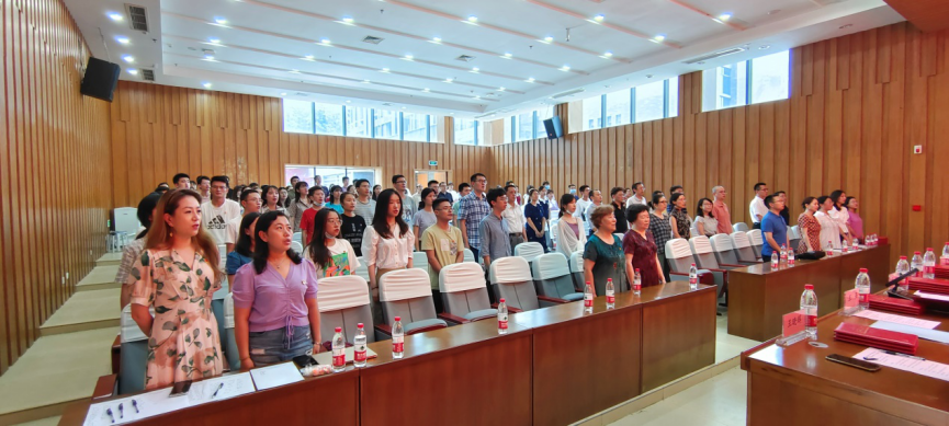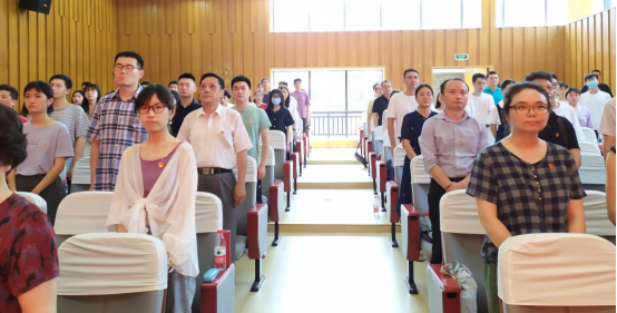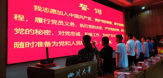 在庄严的中国共产党党旗下,院党委书记陶宏同志领誓,新党员进行入党宣誓、老党员重温入党誓词,坚定表达了为共产事业奋斗终身的赤诚决心。