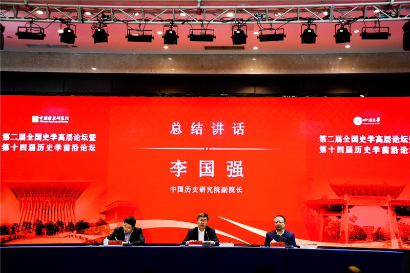 中国历史研究院副院长、《历史研究》主编李国强出席论坛闭幕式并总结讲话。李国强指出,中国历史学研究已经充分证明马克思主义社会形态理论具有科学性、真理性和解释力。以习近平新时代中国特色社会主义思想为指导,是坚持和发展马克思社会形态理论的根本遵循。李国强强调,构建科学的、完整的中国社会形态理论体系,要原原本本学经典,立足中国历史实际,加强多学科融合。所有有理想、有志向、有抱负的新时代史学工作者,都要树立问题意识,加强理论创新,做有思想、有情怀、有担当的史学研究,不断推进新时代中国史学高质量发展。