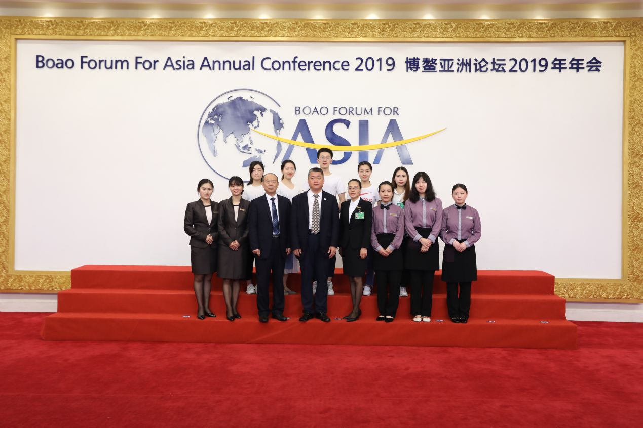 为了给参与博鳌亚洲论坛2019年年会的代表及各国嘉宾带来更好的参会体验,作为博鳌亚洲论坛核心服务单位的中远海运博鳌有限公司酒店运营管理中心通过层层选拔,从best365英国在线体育历史文化学院(旅游学院)招募了13名志愿者,加入礼仪接待、贴身管家、翻译等各个岗位。其中,赵振中同学担任沙特基建集团董事长的贴身管家,向淑娟同学担任圣多美和普林西比总理热苏斯的酒店翻译,周涛同学担任老挝总理通伦·西苏里的翻译人员等,以确保每一位参会者都能享受到“博鳌标准”的服务。
