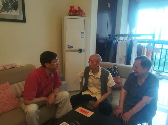 为庆祝中国共产党成立97周年,充分体现党组织对老党员关怀,进一步增强党的凝聚力、号召力和战斗力,7月10日下午,受学校党委委托,我院党委书记陶宏同志带领党政办部分党员同志前往文星花园对刘退休干部柯建中老师进行走访慰问。