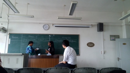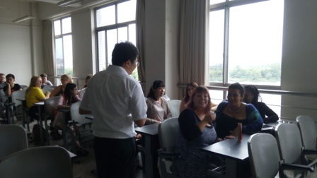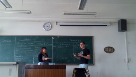 本次交流讨论活动由王果老师主持,同学们分组进行。中国学生与留学生的半小时讨论后,由每组派两名同学上台发言。十多天的生活,留学生们发现了中国繁华的现代城市、中国对历史的高度关注、中国的时尚繁荣。改变了他们想象中落后的中国的看法。此外,他们感受到成都湿润、火热的夏日,而成都的食物也如此,充满了“挑战”。最后,王果老师总结,他从19世纪以来中国历史发展的角度,解释了今日中国的发展进步。